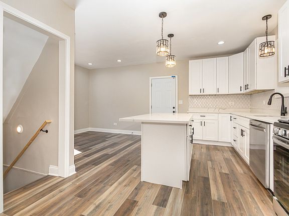 This beautifully renovated brick bungalow blends classic charm with modern finishes, offering 6 spacious bedrooms and 2 full bathrooms across a versatile, multi-level layout. Step inside to find a gorgeous open-concept eat-in kitchen featuring brand new cabinetry, sleek quartz countertops, custom tile backsplash, a large island, stainless steel appliances, and all-new flooring that flows seamlessly throughout the home.The spacious living room, separate dining area, and cozy breakfast nook create the perfect setting for both intimate dinners and lively family gatherings. The main level offers two bedrooms and a fully renovated bath. The finished upper level adds two more bedrooms and a home office or huge wic option. Downstairs, the lower level with exterior accesss includes a large family room, two additional bedrooms, another updated full bath, a laundry room, and plenty of storage space-ideal for a large family, guests, or work-from-home needs. Generous, fully fenced backyard and convenient detached 2-car garage with a brand new roof and siding. Additional updates include new HVAC, hot water heater, all new flooring, cabinetry/vanities, appliances, lighting, and paint throughout, ensuring peace of mind for years to come. Located just minutes from I-94, public transportation, shopping, dining, and parks-this home offers convenience, space, and style all in one. Don't miss your chance to call this move-in ready gem home!