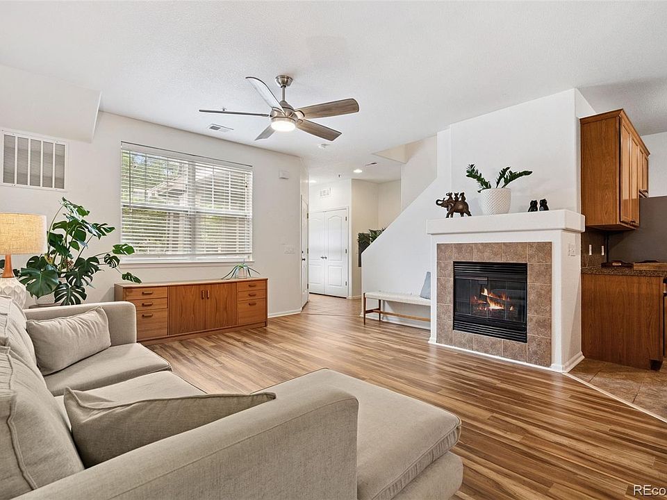 Stylishly updated two-story Maple Leaf condo featuring 2 bedrooms and 3 bathrooms, designed with an open floor plan that blends comfort and functionality. The main level welcomes you with warm wood flooring, a cozy gas fireplace, and a kitchen with a convenient pantry—perfect for everyday living and entertaining. You'll also appreciate the main floor laundry, complete with washer and dryer. Upstairs, newer carpet adds comfort, while the spacious primary suite offers a Juliet balcony, walk-in closet, and private bath. A generous secondary bedroom and additional full bath provide extra flexibility. Enjoy outdoor living on the private patio and the convenience of a detached one-car garage. Community amenities include a clubhouse, hot tub and pool—ideal for relaxing or social gatherings. Conveniently located near shopping, dining, and commuter routes. Desirable, extremely well kept community!