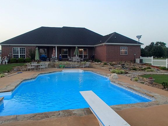 DREAMY COOL, over 9 acres with paradise in your backyard. Pool has waterfall, step in area, nicely landscaped with tiers of color and a creek running along the pool for a nice peaceful relaxing abeyance. Home features 4 bedrooms 2.5 baths open/split floor plan with formal dining, tall ceiling and built-ins. The back 3 acres has timber on it and bike or walking trails. VERY UNIQUE property.