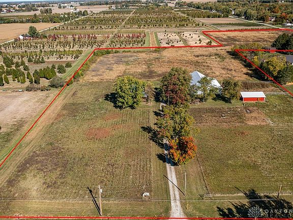 Tucked 300 feet off the road and surrounded by 17 breathtaking acres of peaceful farmland, this 1919 farmhouse is where timeless character meets endless opportunity. The home was freshly painted in June 2025 and greets you with the warmth of original 3” wood floors, tall ceilings, and sun-filled rooms that radiate comfort and nostalgia. The inviting country kitchen serves as the true heart of the home—perfect for home-cooked meals, morning coffee, and laughter that lingers. It has loads of cabinets for storage and counterspace for food prep. Four spacious bedrooms offer flexibility for family, guests, or an office, while the oversized 9x13 bathroom provides convenience and comfort during busy mornings, including a tub/shower combo and vanity with storage. The upstairs space allows for the easy addition of a second bathroom, creating room for future expansion. UPDATES: updated electric and a 3-year-old furnace. Step outside, and the possibilities unfold. A classic 40x70 barn stands proud with sturdy horse stalls, a concrete floor, and a loft capable of holding up to 2,000 bales—ideal for livestock, equipment, or creative pursuits. The 30x40 outbuilding is perfect for a workshop, storage, or classic car collection. The acreage is currently cash-rented and CAUV-qualified, offering both income and valuable tax benefits. Picture your mornings surrounded by open skies, evenings by golden sunsets, and weekends exploring the land that’s truly your own. Conveniently located near Rt. 49 yet tucked away in its own private world, this exceptional property is more than a home—it’s a lifestyle, a legacy, and the peaceful retreat you’ve been searching for. Here, you don’t just live on the land—you live with it. NO HOA. Located in Clay Twp, No city taxes. Northmont SD.