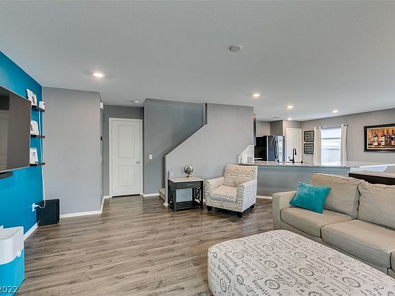 Immaculate home located in Tule Springs! Great curb appeal shows off desert landscaping in front with paver driveway and patio and finished rear yard including REAL grass. Located Minutes Away From the 215 & theAmazing Tule Springs Regional Park (Coming soon). Inside boasts an open floor plan and Stunning Kitchen with Granite Countertops, espresso cabinetry & Walk InPantry, all appliances are included. Main floor is complete with bedroom and full bathroom. Upstairs walks into an open loft with feature wall and includes an additional 3 bedrooms. Primary Suite is complete with dual sinks, walk in shower and beautifully finished feature wall. Located in a Gated Community that Includes a Beautiful Park, Playground, and a Picnic and BBQ Area. This is an Energy StarCertified Home.