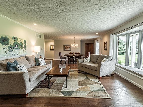 Beautiful Ranch style Retreat with 5+ acres, fabulous stocked pond & 72 x 36' MORTON bldg w/ 2 large overhead doors. You will find a totally updated home boasting 3-5 bedrooms & 3.5 baths. Gourmet kitchen w/ soft close cabinetry, granite countertops, Stainless Steel appliances, large Island & so much more. Living room, Dining area, Great room offering a Gas Fireplace w/ Leathered Granite Fireplace Hearth. Florida room with a bank of windows to savor the view. Owner's BR with En Suite and heated floor. FULL finished Walk Out lower level, with a Wood burning fireplace, offers so many options, such as a Mother in Law Suite. Boat, RV, & multiple car storage possible in the Morton bldg. This country setting, with all it has to offer is a must see. Also see Virtual Tour! Agents see A2A remarks