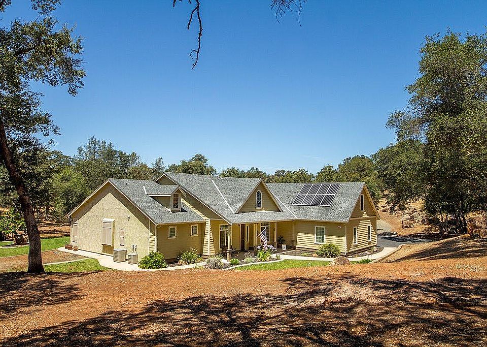 A little bit of heaven! Beautifully maintained 4 bedroom/3 bath home on 8+ acres in the foothills. Features include travertine stone flooring in the entry, kitchen, nook and hallways, crown molding, wood shutters, coffered ceiling in the master and lots of storage throughout. The designer kitchen offers cherry finished cabinets, granite counters, stainless steel appliances, 5-burner gas cooktop, convection oven, eating bar and rollout drawers. Enjoy retiring to the spacious master suite that opens to the back patio and includes a wide jetted tub, walk-in tiled shower, double sinks and spacious master closet with organizers. Two bedrooms are connected by a jack and jill bath and the guest bedroom has direct access to the 3rd bathroom. Enjoy observing wildlife from the back covered patio with 2 overhead fans. Finished garage is 25' deep for longer vehicles and has overhead storage and epoxy painted floor. Solar system is paid for - you'll love the low bills. Property is fenced and cross fenced with gated entry and a 3 stall horse barn, plus tack room/hay storage and a sanded arena.