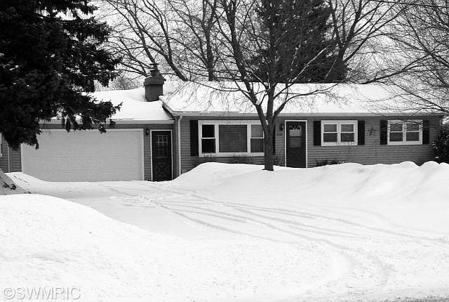 For details and more pictures, call listing Agent: Darcy Harmsen at (269) 488-0164. Well-maintained 3 bedroom ranch near new 12th St. Elementary School. Large living room has ceiling beams and stone fireplace. Kitchen has like-new appliances with new dishwasher and freshly painted walls & cabinetry, dining area has large slider to large shaded deck overlooking large fenced yard with many shade trees. All three bedrooms have wood floors, one is carpeted. The downstairs recreation room is quite retro, with a elevated dance floor. Large workshop area and pantry under the stairs. New roof and siding in 2005. Neutral colors with white painted trim throughout. Priced to sell!