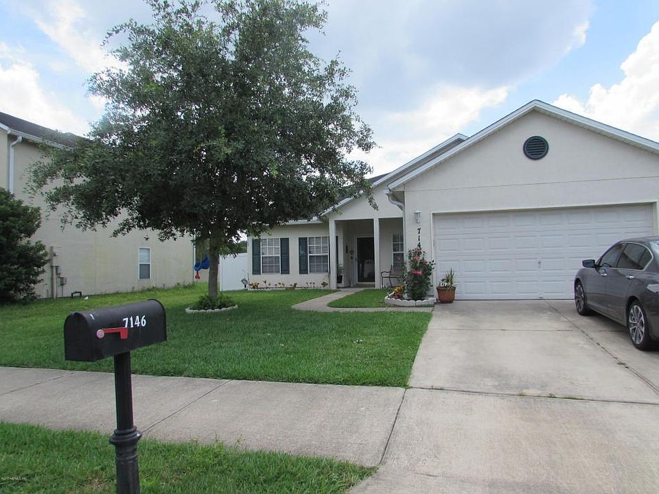Wonderful, well cared for home in Rampart Ridge! Fourth bedroom can be used as a bedroom or as an office. Open floor plan with upgraded kitchen cabinets and lots of storage. Spacious kitchen opens up to family room. Large ceramic tile in living areas. Laminate in bedrooms. Split floor plan. Master bathroom has dual sinks. Garage has built in cabinets providing more storage! Screened in lanai and fenced in back yard. Sprinkler system. Only 6 Miles and minutes away from NAS JAX! Close to shopping and restaurants!