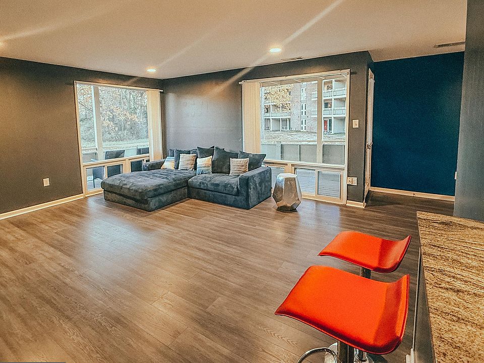 Step into modern comfort in this completely renovated unit featuring an open floor plan and gorgeous hardwood floors throughout. The sleek galley-style kitchen offers stainless steel appliances, ample cabinetry, and a convenient serving window that opens to the living room, creating a seamless flow for entertaining and everyday living. A separate eating area provides the perfect spot for dining. Large windows fill the home with abundant natural light, enhancing the warm and inviting atmosphere. Both bedrooms are generously sized and include ceiling fans for added comfort. Relax and unwind on the expansive wrap-around balcony — ideal for morning coffee, evening sunsets, or outdoor lounging.