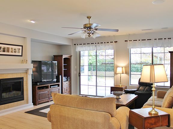 Wonderfully improved; immaculate well cared for residence features 2 Bedrooms with an Office that could be 3rd Bedroom (if closet added). Split Floor Plan - Open Great Room concept with 9ft Ceilings. Large walk in Pantry off of Kitchen - lots of windows makes home light & bright. Sellers have done numerous Improvements - (see List). Newer HVAC and Water Heater. Granite Counters in Kitchen, backsplash new Stainless Appliances. Master Closet w/ built in organizers. Backyard is enclosed w/ low wall - paver pad for Hot Tub in place w/ elec. 3rd bay of Garage was designed as a ''Workshop''. Garage has storage cabinets and epoxy floors. Stoneridge HOA provides indoor/outdoor pool, parks, sports court, exercise facilities. Public Golf Course and Restaurant are within walking distance