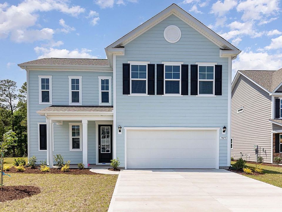 Waterbridge community is in the sought-after Carolina Forest area. It is minutes away from local grocery stores, shopping centers, golf courses, attractions, and of course the beach! However, this community is filled with resort-style amenities that make it hard to leave home. This gated community features a clubhouse to enjoy special events, the “largest residential swimming pool in SC”, fitness center, tennis, pickleball, basketball, volleyball, and bocce Ball. There is even a lake and boat launch for those who enjoy water activities! Welcome to your modern retreat! This beautifully designed two story home offers the perfect blend of comfort, style, and functionality, featuring 4 spacious bedrooms and 3.5 bathrooms. As you step inside, you're greeted by a bright and airy open-concept living area that seamlessly connects the living room, dining area, and kitchen, making it perfect for entertaining and everyday living. Large windows flood the space with natural light, while modern finishes and thoughtful design add a sense of elegance and warmth. The heart of the home is the gourmet kitchen, complete with a large island, 36" cabinets, quartz countertops, stainless steel appliances including a gas range, and a walk in pantry. Conveniently located on the main floor, the primary suite serves as a private oasis. It features a spacious bedroom and luxurious ensuite bathroom with a double vanity, walk in shower, garden tub and a generous walk in closet. Also on the first floor is a dedicated laundry room, adding convenience to your daily routine. Upstairs you'll find three additional bedrooms, two full bathrooms and a loft area ideal for a game room, study or media room. A powder room on the main floor, a convenient drop zone off the garage, and a two car garage round out the home's many features. This home combines modern living with timeless design; perfect for families of all sizes. This is America's Smart Home! Each of our homes comes with an industry leading smart home technology package that will allow you to control the thermostat, front door light and lock, and video doorbell from your smartphone. *Photos are of a similar Belfort home. (Home and community information, including pricing, included features, terms, availability and amenities, are subject to change prior to sale at any time without notice or obligation. Square footages are approximate. Pictures, photographs, colors, features, and sizes are for illustration purposes only and will vary from the homes as built. Equal housing opportunity builder.)