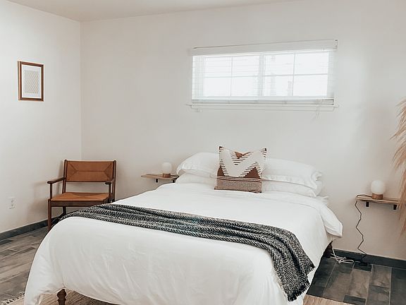Welcome to this fully upgraded single-family home featuring two spacious bedrooms and two modern bathrooms: each designed as a private master suite, offering the ideal layout for roommates or families alike. The thoughtfully remodeled interior boasts a designer kitchen and spa-inspired bathrooms with beautiful finishes throughout. Step outside to your own private retreat: a fenced backyard with a relaxing hot tub and plenty of room for pets to play. Additional amenities include ample off-street parking, in-garage laundry, and stylish curb appeal. Situated on paved streets in a quiet, safe residential neighborhood, this home is just minutes from the main highway, offering quick access to local markets, restaurants, and everyday conveniences. This home offers the perfect balance of comfort, privacy, and accessibility. Don't miss your chance to make it yours! Renter is responsible for all utilities including internet, gas, electric, water and trash. Home comes fully furnished. Special rates and rules will apply for businesses and third party subleases.