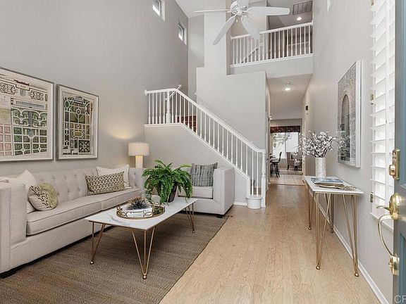 Highly sought after 3-bedroom detached home on quiet tree lined street in Aviara. This home boasts vaulted ceiling living room and upgraded open concept kitchen flowing into the family room. This welcoming and well-appointed home features beautiful wood floors throughout. Upstairs features an owner’s suite plus two additional bedrooms and a conveniently located laundry room. The spacious and private backyard is perfect for entertaining friends and family. This home has A/C, a 2 car garage, driveway. There are two guest parking spaces across the street. Association amenities include a pool, spa and a small park located right down the street. A great home to live your Southern California coastal lifestyle in. Walk to highly sought after Aviara schools. Close to shopping, dining, library, movie theater, golf courses, Batiquitos Lagoon hiking trails, beach and easy access to the freeway.