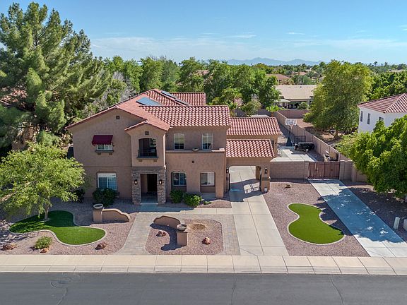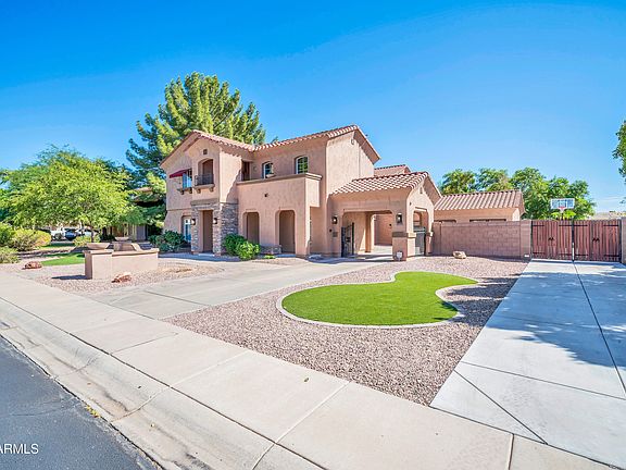 This stunning 5-bedroom, 3.5-bath residence combines luxurious upgrades with the perfect indoor-outdoor lifestyle. An inviting layout offers 2 flex/hang-out rooms, and a formal dining room for entertaining. The spacious kitchen is a chef's dream with a massive center island, granite countertops, abundant cabinetry, and tile flooring that flows seamlessly throughout the main level. Upstairs you'll find elegant luxury vinyl flooring and beautifully tiled bathrooms. The primary suite opens to a private balcony with a spiral staircase to the backyard. Its spa-like bath features dual vanities, a soaking tub, separate walk-in shower, and an oversized walk-in closet. OWNER IS WILLING TO PAY OFF SOLAR WITH A STRONG OFFER. A secondary bedroom includes its own ensuite bath, while 2 additional bedrooms share a stylish Jack and Jill. You will also find an office office space/den. Step into your own resort: a huge covered patio overlooks a sparkling pool, pergola, cabana, gas fire pit, two built-in BBQs, hot tub, and a large turf area perfect for play or gatherings. The garage has been fully renovated with custom lighting, fresh paint, and sleek epoxy flooringideal for car enthusiasts or extra hobby space. New updates include: water softner, reverse osmosis, front gate motors, irrigation system, interior fans, interior paint, pool filters, pool vacuum, smart light switches, and garage doors and motors.