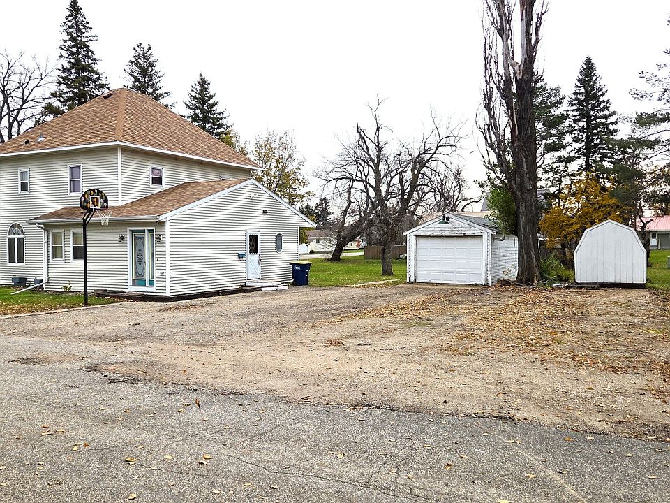 'Space to Stretch', nearly 1 acre lot with 2,036 square foot 2 story home. City park and pool are only 1 block East. Home features spacious, open kitchen and dining area with large family room. There is a bedroom, a bonus room and bathroom on the main floor. The second floor hosts 3 bedrooms with ample closet space and a bathroom. Also enjoy the deck and patio for entertaining. The Lot showcases mature trees, large grassy areas to roam, One car detached garage with room for adding additional stalls, paved driveway. The West lot used to be a small trailer court it has multiple utility stub-ups for future development.