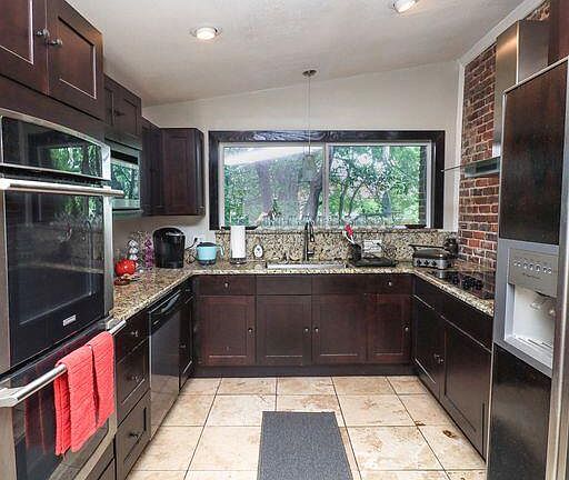 The kitchen and bathrooms were renovated in the 2010's. Granite counter tops with stainless-steel fixtures and appliances (two electric ovens, dishwasher, refrigerator, electric stove top, vent, and disposal) and a compact work triangle make the kitchen both beautiful and functional. The tankless water heater ensures that there is always hot water. The upstairs bathroom even enjoys its own a jacuzzi.