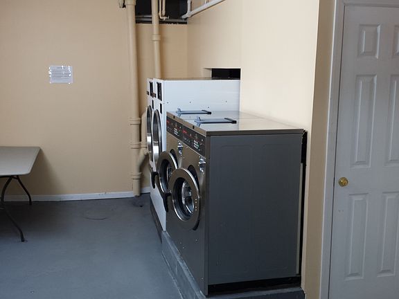 High ceilingsRenovated coin-operated laundry roomLarge windows
