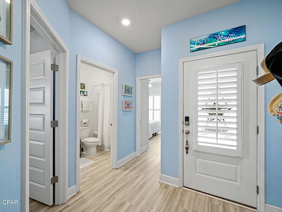 LOCATION, LOCATION!! 715 Backwater Rd is a stunning home in the heart of WindMark Beach overlooking a peaceful pond! This 4-bedroom/3-bath coastal retreat offers style, comfort & incredible flexibility thanks to its thoughtful design. The main residence showcases an open-concept layout with 3 bedrooms/2 baths, highlighted by luxury vinyl plank flooring, soaring 9-foot ceilings & an airy coastal color palette. At the heart of the home, the spacious kitchen features granite countertops, stainless appliances & an oversized island with seating for four. Plantation shutters add elegance while recessed lighting & abundant natural light create a warm, inviting atmosphere. The living area flows seamlessly to the backyard through French doors opening to pond views & a charming dining nook is ideal for both casual meals & entertaining. What truly sets this property apart is the private mother-in-law suite. With its own exterior entrance, full kitchen, living room, bedroom & bathroom, this space is perfect for multigenerational living, a private guest retreat or rental income. Matching the main home, it includes granite countertops, stainless appliances & stylish finishes. The lot backs to a pond for added privacy & a tranquil setting, with common green space between you & your neighbor. A shallow well for irrigation helps keep the landscape lush & beautiful year-round. Living in WindMark Beach means enjoying a lifestyle like no other—residents have access to a sparkling community pool, modern fitness center & the freedom to drive golf carts all throughout the community to shops, dining & three miles of pristine beach. Just minutes away, downtown Port St. Joe offers boutique shopping, fresh seafood restaurants, a bustling marina & a charming historic district. This is more than a home—it's a way of life where mornings start with pond views, afternoons are spent on the sand & evenings bring community fun & coastal relaxation. Call for your private tour & LIVE THE BEACH LIFE!!