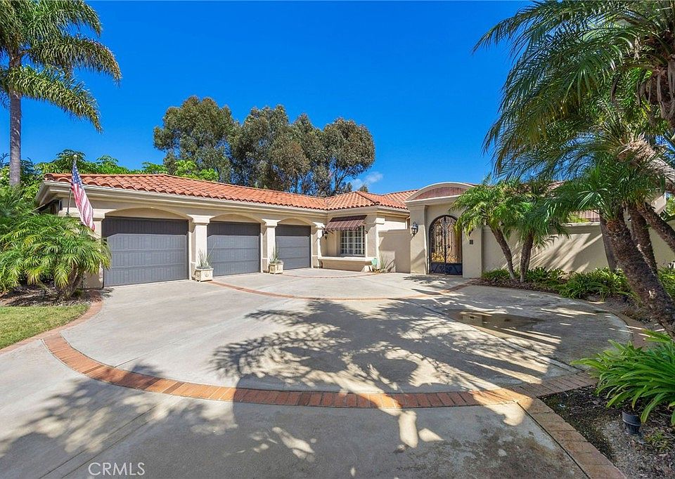 Quite possibly one of San Clemente’s most private single-level estates, this custom home is tucked at the end of a quiet cul-de-sac in the coveted Misty Ridge community. Behind a wrought-iron gate, a manicured courtyard introduces grounds that feel almost storybook — lush gardens and pristine landscaping create a setting rarely found in coastal Orange County. Glass fencing frames unobstructed hillside views and golden sunsets over Saddleback Mountain, while an outdoor kitchen with built-in refrigeration invites effortless entertaining. For outdoor enthusiasts, San Clemente’s celebrated trail network sits just .2 miles away at the Ridgeline Trailhead, offering instant access to miles of scenic hiking and biking. Inside, a functional single-level floor plan unfolds with stunning decorative ceilings, graceful arch accents, crown molding, and travertine flooring. Ornate double entry doors reveal a formal living room warmed by a classic fireplace, with a separate dining room just beyond. Just off the main living area, a custom-built office offers a refined workspace. With generous cabinetry and granite counters, the kitchen transitions seamlessly into the living room, where a fireplace and exterior views create a relaxed yet elegant tone. Designed for privacy and relaxation, the primary suite offers a sitting area with fireplace, private exterior access, a cedar-lined walk-in closet, and a luxurious bath with dual vanities and a large walk-in shower overlooking the hills. Completing the residence are three additional bedrooms with built-in features and generously-sized closets, full bathroom, and dedicated laundry room. Set on an impressive 18,500-square-foot lot, the estate also features a three-car garage and oversized driveway. Rarely does a property combine this level of privacy, functionality, and beauty—an exceptional opportunity within this desired community.