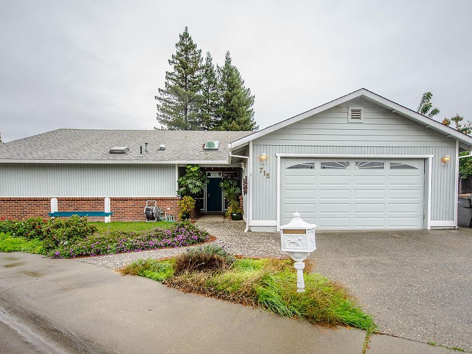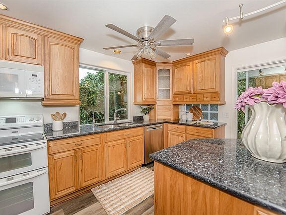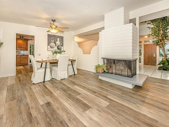 If you're looking for a more " Mid Century Modern" vibe, this spotless 4 bedroom, Streng built beauty, nestled on cul-de-sac lot, is calling your name~! Roof replaced in 2005 to create a now pitched profile, offering a skylit atrium and so much natural light. Kitchen offers granite counters and island, open to family room with cathedral ceilings and fireplace. Separate living room, dining room and convenient laundry room. Laminate, tile and carpeted floors throughout. Primary suite has 2 walk-in closets and spacious updated bathroom. Backyard has a sparkling pool, covered back patio to enjoy your coffee or dining el fresco. Mature landscaping with citrus and other trees. 2 car garage has been extended to a length of 32' depth. Lovingly cared for and looking for a lucky new owner to start making their own cherished memories~