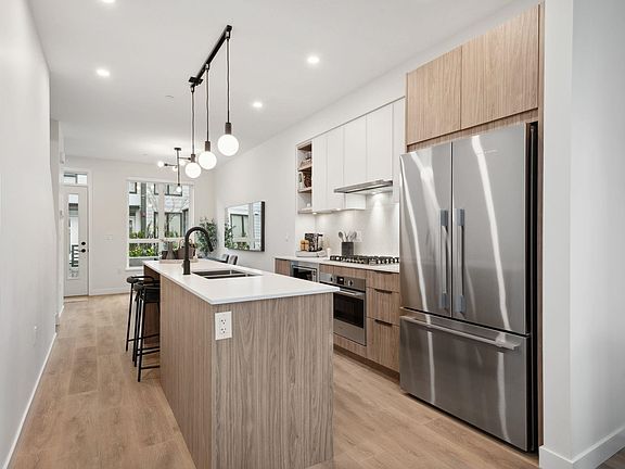 Welcome home to Dwell by Anthem. Located in a peaceful, family-oriented neighbourhood an 8 mins walk to the Burquitlam Skytrain, restaurants, shopping, parks, the new YMCA, and Mtn View Elementary School. Enjoy hosting gatherings with friends and family in your own club house and watch your children play in the playground. Step in from your very own front door! This spacious 1385 sqft corner 3 bedroom townhome offers your dream kitchen with designer appliances and 36" fridge, + full sized laundry. The open-concept layout flows seamlessly onto a private patio where you can garden, entertain/host with your pets, friends/family gas bib incl. Primary bedroom features a double vanity ensuite and private balcony. Book your appointment to tour this weekend. Located at home 101 - 713 Smith Avenue.