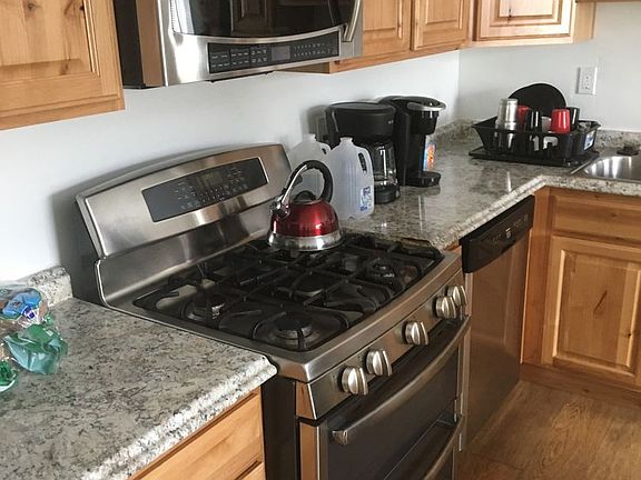 This home features 4 br 1 bath newly remodeled. Open and bright kitchen with stainless steel appliances. Stove has a double oven and 5 burners, which is perfect for any chef! Large living room with master bedroom and second bedroom downstairs. Upstairs has bedrooms and a loft for an office. Large grassy area in back yard surrounded by mature trees. Washer and Dryer Hook-ups.