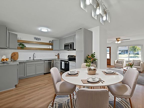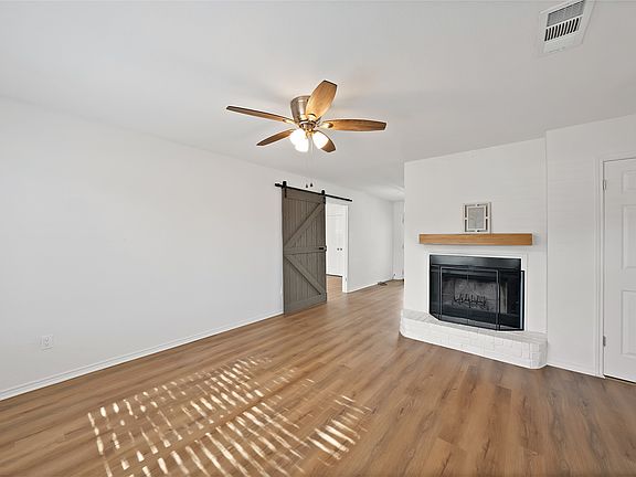 Wood-burning fireplaceModern tileUpdated lightingStainless steel appliancesCeiling fansGranite countersFour bedrooms