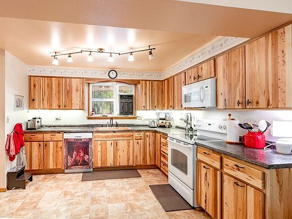 Beautiful 5 bed/3 bath home in the desirable Camelot 1st Addition and Mead school district. Outside: ½ acre lot with lovely covered patio/deck areas, a huge orchard-like yard with apples, plums, cherries and grapes, RV parking with power post, a storage shed with power. Inside: Roomy floor plan, large eat-in kitchen, main floor living with primary en suite and both upstairs and downstairs laundry, large ‘mortgage helper’ or in-law apartment in the walk-out lower level. Brand new central A/C keeps this home cool in the summer while the 2 fireplaces keep cozy in the winter. This well-kept home is blocks from a park, and close to northside shopping. Book your appointment now.
