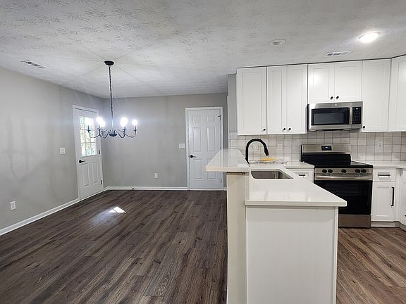 MUST SEE! New cabinets, countertops, appliances, flooring, light fixtures and paint! Make your appointment today to see this beautiful Coweta County maintenance free ranch, perfectly nestled on 1.60 acres. Step inside and appreciate the open feeling of the great room with vaulted ceilings and a cozy fireplace. The kitchen features new tile backsplash, stainless steel appliances, huge sink, solid surface countertops and a breakfast bar. Great flex space that can be a separate dining room/play area/ or office. Wooded backyard with plenty of privacy and potential. Clean & ready for you to call home sweet home!