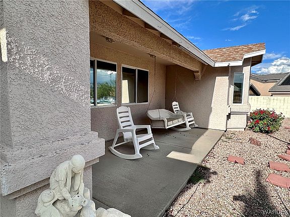 LOCATION! LOCATION! LOCATION! Beautiful home with 3 bed, 2 bath, RV parking and hookups, open layout that is spacious and bright. The front yard has multiple trees and shrubs with desert rock landsacaping and the porch porch has plenty of room to sit and watch the sunrise! There is a covered patio on the back as well! This is a split layout home so the master bedroom has privacy. The master bedroom has a large bathroom with a double door entry and huge walk in closet that has its own skylight. Double doors exit to the back patio from the master and from the kitchen area for easy access to enjoy BBQ's and relaxing in the shade. The garage is oversized 4x4 and is double insulated on the afternoon sun side to help keep it cool! There is a firepit in the upper back corner of the yard and another portion of the yard has a separate fence for pets or a large garden. The sunrises and sunsets will wow you for sure~ You really must see this property in person to get the feel of peace and quiet that the location has to offer.