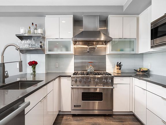 Welcome to The Continental, a high end boutique steel & concrete building with an industrial vibe offering on-site garage parking & gym. Number 2A features 2100 sq. ft. of interior living space over 2 floors, 3 bedrooms, 2 baths & a huge 1041 sq. ft. private terrace. The Soaring 17' vaulted ceiling in the living area and contemporary open floor plan makes this lofty home feel super spacious. The Nano wall of glass doors creates a seamless indoor/ outdoor living experience coveted by all urbanites. Every bedroom is oversized & offers tons of storage. The primary bedroom has remarkably oversized his and hers walk-in closets plus additional linen closets. Other features inc: A true gourmet kitchen with a Viking 6 burner stove with vented range hood, beautiful wide plank wood floors, washer/dryer, recessed lighting, custom closets galore and automated window treatments throughout. All this conveniently located within a quiet midtown neighborhood with parks, shopping, restaurants and NYC transport within blocks.