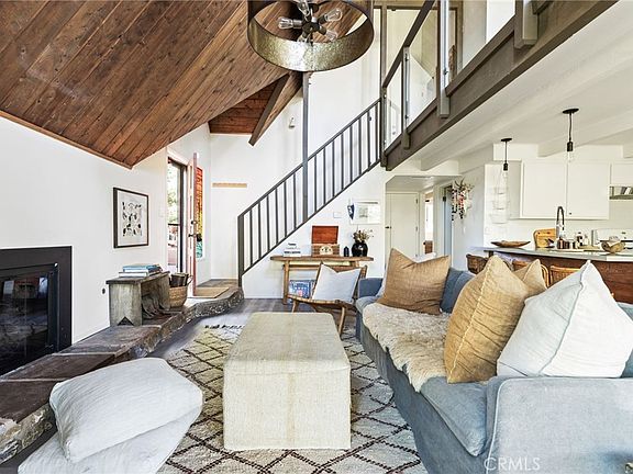 The perfect A-Frame style mountain home with tasteful upgrades, a secluded feel and prime location. This 3 bed 2 bath + a loft cabin is nestled among towering trees, has easy access and multiple expansive decks. Well-appointed upgrades throughout the house create a refreshed feeling while maintaining the charm of being in the mountains. Each room boasts natural light and cozy feelings. The main level features an open concept living, dining and kitchen space that opens to one of the large decks via sliding doors. In addition, there are two main level bedrooms and a full bath. Upstairs find a suite that opens to a balcony and has space for a home office. The open concept loft opens to yet another balcony and has tree line views. Perfect for all seasons, the home features a wood burning fireplace and both heating and cooling systems. With close proximity to the national forest, Lake Arrowhead and Grass Valley Park many mountain activities are easily enjoyed.  Flat parking and lake rights are included!