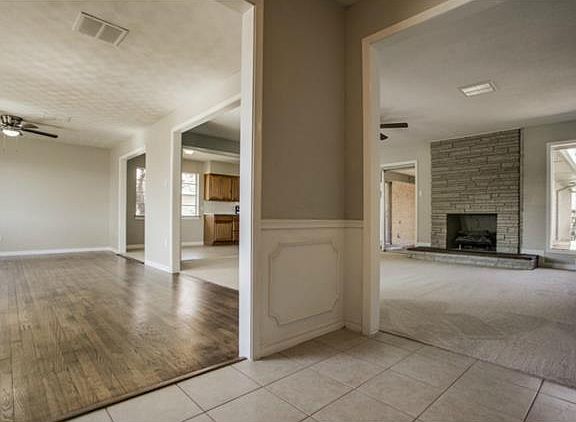 Beautiful ranch style home, completely renovated! New granite in bathrooms and kitchen, stainless steel appliances, new hardwood floors, and new carpet. Perfect home for entertaining, 2 large living areas and open concept layout. Gorgeous lot with old trees, built in wood burning smoker in back yard, covered patio and new landscaping. This is a must see!!