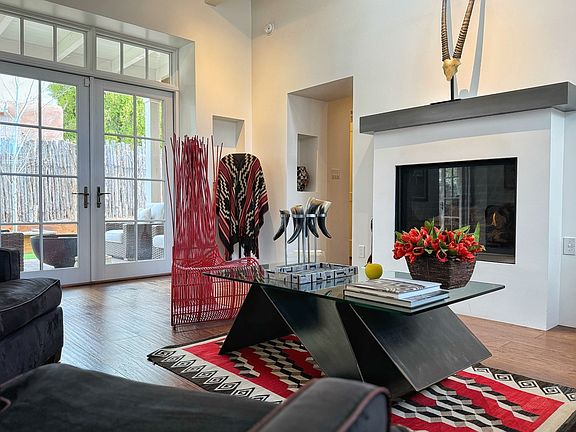 South Capitol stunner built to the highest standards and walkable to everywhere you want to be in Santa Fe, including the Railyard, Guadalupe District and the Plaza. The owners were builders in Las Campanas who designed this home to their exacting specifications. Built in 2017, this gracious Territorial-style home features on open floor plan and French doors that lead to a private walled backyard with covered terrace, hot tub and mature landscaping. The cook's kitchen opens to a lovely free-flowing living and dining room with a gas fireplace and tall ceilings. All walls are museum-quality finish. The primary bedroom has doors opening to the back terrace with an ensuite bath featuring a large, double-sink vanity and walk-in shower. The second bedroom features a built-in work area and western light. In between the primary and second bedroom is a full bath/powder room. Completing this sophisticated in-town home is an oversize two-car garage with built-ins. Whether you want a full-time home or the perfect Santa Fe getaway, this home is not to be missed!