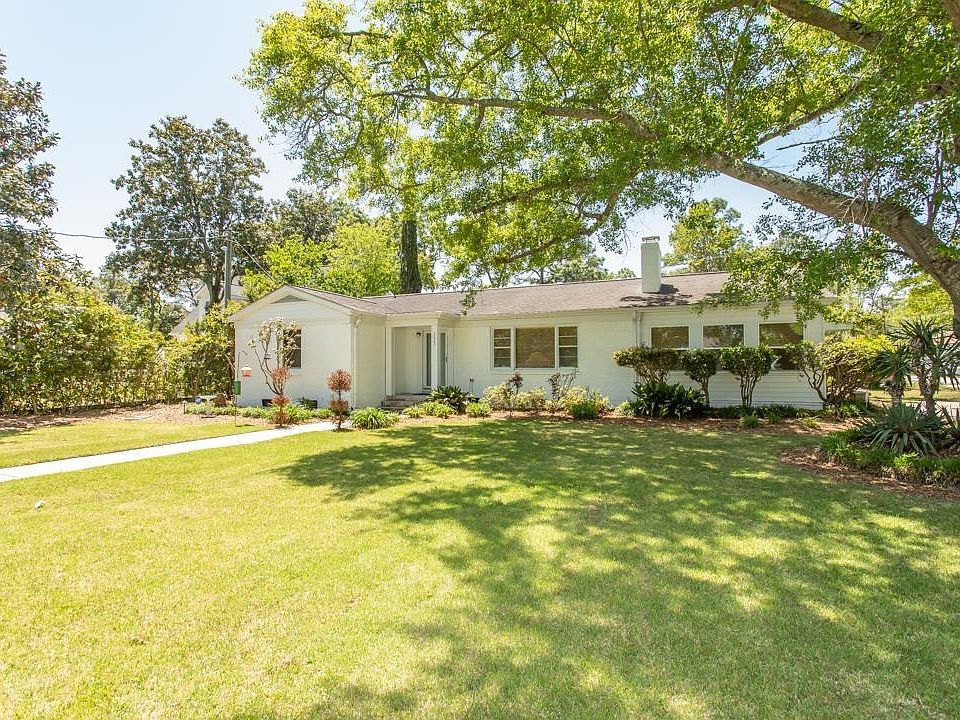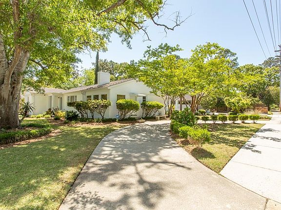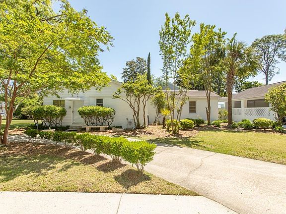 Wonderful home in Pine Lakes. 3 bedrooms and 2.5 bath. Corner lot, 2 den areas and a flex room (office, etc) with its own entry from exterior, pool replastered and tiled in 2021 as well as new salt system, heater and pump, heated bathroom floor, sun porch, alarm system, original hardwood flooring in bedroom and hallway, gas water heater, kitchen remodel with quartz countertops, gas range and all stainless appliances. Carport (could be converted to garage) as well as circular drive and parking pad. Great landscaping. No HOA ! Brick home with exterior freshly painted. Less than 1 mile to the beach.