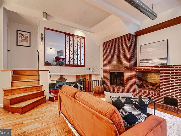 Just one block from the Washington Monument in historic Mount Vernon, 715 Lovegrove Street is a renovated carriage house smart home offering 1,500 square feet of unique design and modern updates. Recently used as a recording studio, the property’s creative essence—combined with thoughtful contemporary features—makes it a sophisticated yet welcoming residence. The main level boasts a spacious living area with exposed brick and ductwork, recessed lighting, and elegant built-ins, all centered around a newly installed, fully code-compliant brick fireplace that adds both comfort and architectural flair. The adjacent kitchen has been fully updated with sleek finishes, high-end appliances including a Bosch dishwasher and a Samsung Bespoke Refrigerator with beverage station, and a versatile bonus room—perfect for use as an oversized pantry, workroom, or extra storage. Ascending a half flight of stairs, the home’s standout architectural feature is the bedroom suspended above the living area, creating a modern, multi-level open floor plan that adds depth and dimension to the layout. A charming, updated full bath is located on the same level. A separate flight of stairs leads to a second large living space with a wall of mirrors and a Juliet balcony, providing ample natural light and views of a cascading garden. A second bedroom offers a private retreat, while the newly renovated full bath provides a spa-like escape. Laundry is conveniently situated in a generous walk-in closet off the bedroom. Thoughtful storage solutions, including built-ins and ample closets, enhance functionality throughout. Situated in the heart of Mount Vernon, this residence offers proximity to cultural landmarks, dining, and green spaces—all within one of the city’s most historic and vibrant neighborhoods. With its blend of history, architectural interest, and modern amenities, 715 Lovegrove Street presents a rare opportunity to own a home that is both distinctive and functional. Don’t miss the opportunity to call this enchanting property your own!