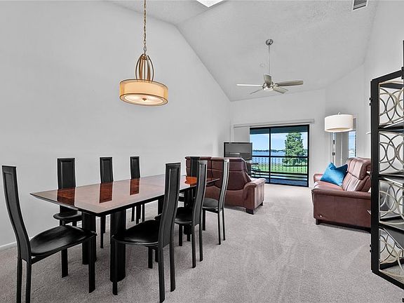 Beautiful waterfront views, nightly sunsets, and direct access to the world-famous Winter Haven Chain of Lakes—welcome to this beautifully updated condo in the gated lakeside community of Winterset. Offering 2 bedrooms, 2 bathrooms, and its own private one-car garage, this residence blends comfort, style, and the relaxed Central Florida lakefront lifestyle. Step inside to discover an open and inviting layout with high ceilings and an airy feel unique to second-floor living. The great room is the heart of the home, featuring newer carpeting, updated lighting, and expansive glass sliders that frame panoramic views of Lake Winterset while filling the space with natural light from the skylights above. Adjacent to the living area, the generous dining space flows easily into a well-designed eat-in kitchen. Here you’ll find a breakfast bar, dinette, painted cabinetry, closet pantry, laundry closet with washer and dryer, and a full suite of updated stainless appliances—including a gas range, refrigerator, dishwasher, and microwave. The primary suite is a true retreat, offering tranquil lake views, private lanai access, and an expansive walk-in closet. The en-suite bath includes an extended vanity with sitting area and a beautifully updated walk-in shower. Split from the primary, the guest bedroom is generously sized with ample closet space and private en-suite access to the second full bath, which features a new marble-topped vanity and a tub/shower combination. Most updates have been completed within the past 2.5 years, including new carpeting, light fixtures, blinds, closet doors, guest bath vanity, water heater, updated electric panel, and a new AC system—ensuring modern comfort and true move-in readiness. The screened balcony provides a private outdoor escape, perfect for morning coffee, evening breezes, or magical sunsets over Lake Winterset. A one-car garage offers secure parking and extra storage, with additional guest parking conveniently nearby. Life in Winterset means enjoying one of Winter Haven’s most sought-after lakefront communities. Amenities include a lakeside clubhouse, pool, hot tub, tennis and pickleball courts, shuffleboard, and a private boat ramp, all set among meticulously landscaped grounds ideal for evening walks or bike rides. From the community ramp, you’ll have direct access to the Winter Haven Chain of Lakes—more than 20 interconnected lakes renowned for boating, fishing, skiing, and waterfront dining. Beyond the gates, Winter Haven offers a vibrant lifestyle with a quaint downtown full of weekend markets, breweries, boutiques, and craft cocktail lounges. Lakeside dining, cultural events, and year-round community activities make every weekend feel special. Centrally located in the heart of Florida, Winter Haven provides an inland setting insulated from coastal flooding, a more affordable cost of living and insurance, and convenient access to Tampa, Orlando, and world-class attractions. Situated off Cypress Gardens Boulevard, Winterset is just minutes from Publix, Walmart, Legoland, shopping, dining, medical facilities, and major highways—making daily life effortless. This is a rare opportunity to embrace Central Florida’s legendary Chain of Lakes lifestyle while enjoying the comfort and charm of Winter Haven living.