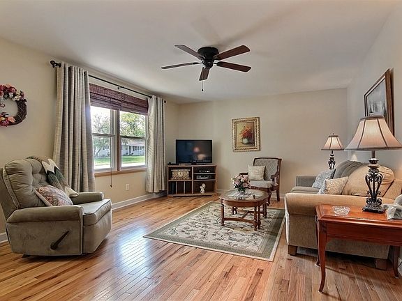 Move-in ready ranch home located in the heart of Crown Point. This home features large living room, dining room and three bedrooms all with hardwood flooring. Master bedroom contains a private bathroom. Spacious kithchen contains numerous cabintes and ample counter space. Refrigerator and range were purchased in 2015 and are included. Huge rec room off the kitched with a storage room that can be converted to a laundry room. Door from rec room leads to large patio and fenced yard with storage shed. Basement is partially finished with a family room and additional bathroom. Some updates included new windows in rec room in 2016 and rest of home in 2014, new skylight in kitched 2017, new water heater 2015, complete sump pump system installed in 2012 with new marine battery 2017 and back up battery 2018. Roof, furnace and A/C 10 years old. Call today to schedule your showing.