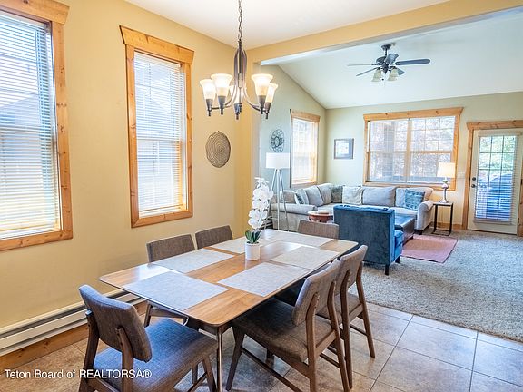 This desirable top-floor condo offers 1,537 sq.ft. of living space, featuring 3 bedrooms, 2 bathrooms & a detached garage. Enjoy the two covered balconies with breathtaking views: the Big Hole Range to the west & the Tetons to the east, making it the perfect spot for your morning coffee. Inside, unwind with vaulted ceilings & a cozy faux fireplace. Stay connected with high-speed fiber optic internet, ideal for video calls or streaming. The prime location boasts granite countertops in the kitchen & bathrooms, a central vacuum system, & beautiful knotty alder trim throughout. Additionally, the condo comes with a lovely furnishings package. The condo features a primary bedroom with a king-sized bed & ensuite bathroom, a second bedroom with a queen bed, & a third bedroom with two twin bunk beds. Located near the community playground, soccer field, & basketball courts. This condo is being sold turnkey, perfect for a full-time residence, a short-term rental, or a vacation home. Simply move in & start enjoying all that the area has to offer. Hit the slopes at Grand Targhee, go fishing on the Teton River, explore the National Parks, & rest and recharge in your year-round getaway.