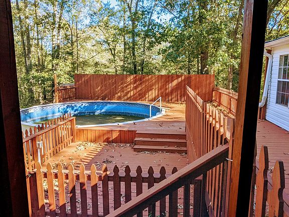 This home sits off of the road on 3.31 acres in Jones County. Quiet and secluded country living. It has 3 bedrooms and 2 bathrooms. Screened in back porch off of the living room. Wrap around tri-level deck that also surrounds the above ground pool. A fenced pasture area and barn with 2 stalls. Nice covered area near the barn. There are 2 goldfish ponds. One is stocked. There is a fire pit built into an octagonal deck. Plenty of room for several chairs. The liner in the pool has a small leak. The liners have just become available in the past month. They were not available for the past year. Seller will pay for a new liner with an acceptable offer. The liner is $1800 installed. Roof is metal and less than 5 years old. Nice sized storage shed also on the property. Front yard is fenced. This home will not last in Jones County. Shown by appt only.