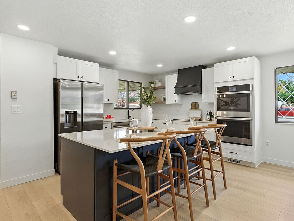 The ONE you've been waiting for!!! Simply put, this home is Quintessenital! The perfect combination of everything you could ask for in a home. Completely remodeled and ready for many more years of memories to be made. Featuring single level living with an open floor plan that is inviting and welcoming to everyone one who enters. Enjoy the large kitchen with all stainless steel appliances, a built-in microwave, double ovens and induction cooktop. The home features high end finishes such as waterproof LVP flooring, Granite, Quartz, and Quartzite countertops. There are two large family rooms on the main floor of which BOTH have a wood burning fireplace. The primary suite offers a custom built in wardrobe, a large shower, and double sink vanity that is well lit for anyone getting ready in the mornings. The main floor offers 2 bedrooms, 3 beautiful bathrooms, and laundry. Downstairs you will find 3 more bedrooms and a bathroom that features a huge 9 foot double sink vanity and 5 and a half foot deep soaker tub. There is a second full kitchen with stainless steel appliances, family room, laundry, wood burniing fireplace, and separate entrance. The home also features central heating and air through out. This home sits on a beautiful .35 acre corner lot in the most desireable area of Nephi. WIth 50 year old mature trees, a beautfully landscaped yard, and large covered patio, you'll find yourself enjoying the outside of the home almost as much as the inside. With spectacular views of Mt. Nebo and the ability to hop on your ATV and ride off the driveway straight to the mountains, this home really has it ALL!