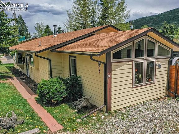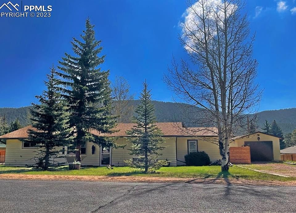 Welcome Home to this cozy Rancher perfectly situated in central Woodland Park! Within walking distance to all schools, shopping, restaurants, Aquatic Center, Memorial Park and all Downtown activities * Beautiful view of the north face of Pikes Peak greets you each day from the Kitchen and Dining Area which features vaulted ceilings and lots of windows bringing in the sunshine and mountain views. This addition to the original ranch makes a delightful plant haven * The large entryway / Family Room / Office offers a Wood Stove that can heat the whole house on those snowy Colorado nights * The Living Room, Kitchen, Dining and hallways have been recently been updated with wood laminate flooring and the 3 bedrooms have hardwood floors * The Laundry Room has extra storage for a pantry and all appliances are included * Brand New Furnace just installed * New Kitchen Counters * Enjoy views of Rampart Range and Pike National Forest from the covered swing or while gathered around the Fire Pit Seating, all included * The entire Back Yard is Fenced for the safety of your family and pets and provides privacy as well * There are two Storage Sheds and lots of room for a Garden or lawn for the family to play * The fresh air of the Mountains is brought into the home through updated double pane vinyl windows * The Garage makes an excellent Workshop and there is tons of Parking for your RV and cars or room to build another garage * It's an excellent time to become a part of this vibrant community !