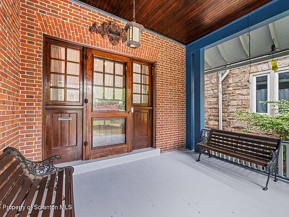 Don't miss your chance to own this magnificent Craftsman-style home located on a coveted block in the Hill Section. Every inch of this stately residence has been thoughtfully maintained, blending modern conveniences with timeless old-world charm. From the moment you enter the breathtaking foyer, featuring gleaming hardwood floors and a grand staircase, the home makes a lasting impression. The spacious living room offers built-ins, a beautiful fireplace, and stained glass windows, while the formal dining room flows seamlessly into an eat-in kitchen or den area--perfect for entertaining and showcasing stunning views of the city.Upstairs, the expansive second floor is anchored by a luxurious primary suite with an en suite bath and walk-in closet. Three additional bedrooms--one currently used as a home office with custom built-ins--and a full hall bath complete the level. The third floor provides incredible flexibility, offering two more bedrooms or a den, enhanced by striking original built-in wardrobes and a fully renovated bathroom.The finished lower level features space for a home gym, a laundry area, root cellar, and convenient walkout access to the beautifully landscaped yard. A detached two-car garage is accessible from the rear alley. With its curb appeal, architectural detail, and move-in ready condition, this is a rare opportunity to own a true gem in one of Scranton's most desirable neighborhoods.