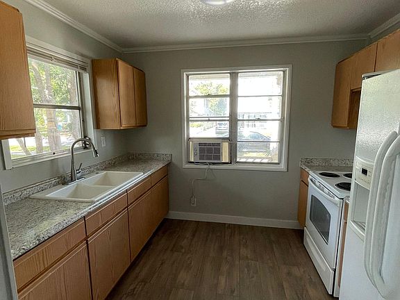 Ready for move-in. This newly renovated 690 sqft 1-bedroom apartment is located less than 2 minutes away from Saint Cloud City Hall and Orlando Health Saint Cloud Hospital. The main entrance leads into a short hallway. To the right there is a living/dining area and a spacious kitchen with front facing windows that bring in great natural lighting. The flooring is completely redone throughout the apartment. The bathroom is newly remodeled as well. The entire apartment is freshly painted. There is a bedroom off to the left of the home with both front facing and side facing windows.