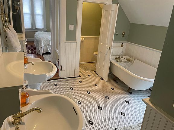 Fully furnished vacation rental being offered for rent month to month, 3-6 months but no annual lease. Do not ask. Available thru may 15 2026 only. Amazing location on edge of business district within walking distance from all downtown shops and restaurants and shorepath to walk!