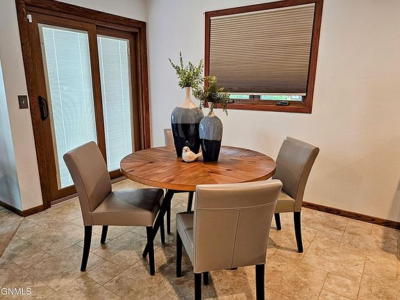 Relax in the inviting living room, where a custom whiskey barrel feature wall adds warmth and a unique rustic charm. Or wander out onto the deck and enjoy the view of the Heart River. A main floor bedroom, a 3/4 bathroom and convenient laundry area provide exceptional accessibility and function.