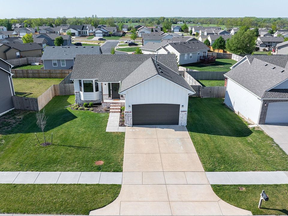 This dreamy five bed, 3 full bath home feels so fresh, updated and absolutely move in ready! The appealing exterior has elevated modern farmhouse vibes thanks to the board and batten siding, on trend lighting and black window details. The open concept floor plan feels airy with neutral paint, vaulted ceiling, easy to clean and maintain LVP flooring and on trend style choices, such as the shaker style cabinet doors, streamlined electric fireplace with a gorgeous wood mantle, neutral granite countertops, subway tile kitchen backsplash and beautiful light fixtures. The primary bedroom has his and her closets, vaulted ceiling and the ensuite bathroom exudes the same sophisticated style seen throughout the home with solid surface countertops and repeated shaker style cabinetry. The two additional main floor bedrooms both have eye-catching accent wall details and built-in loset organization. Head downstairs to the roomy family room and well-sized two additional bedrooms where you'll see the same quality and well-appointed style choices continue. This home's location is walking distance to Prairie Creek elementary and is nearby to shopping, restaurants, highway access and rec centers. Enjoy the neighborhood's walking paths, playground and ponds, or spend time in your own fully privacy-fenced backyard and seating area on the deck. This home would be a joy to come home to!
