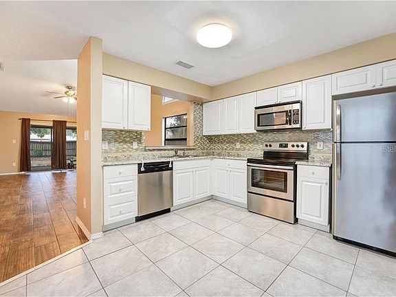 Beautiful 3 bed / 2 bath single story home located on a cul-de-sac in the coveted Forest Oaks Community. This light and airy home feature a great floor plan with vaulted ceilings. Bright kitchen with updated cabinets and space for a dining table, countertops, energy-efficient stainless steel appliances. Large family room that opens to a huge covered, screened patio. This home has many upgrades - tiled floors in all rooms! A huge backyard offers many additional possibilities for entertainment. Well maintained throughout and NEW ROOF in 2018 as well as NEW A/C in 2020.
