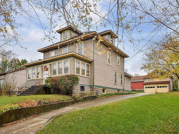 Step into this turn-of-the-century home located walking distance to downtown St. Charles. Almost 2000 square feet with gracious 9-foot ceilings throughout the main floor creates an immediate sense of grandeur, while meticulously preserved woodwork and trim work showcases the craftsmanship of a bygone era. The welcoming front porch has a classic bead board ceiling and is the perfect setting for morning coffee or evening relaxation. Beyond the entry door, the spacious living room immediately captures attention with its stunning inlay hardwood floors that creates subtle pattern underfoot. The family room has a striking coffered ceiling, custom built-in cabinetry, featuring original glass-front displays, which provides both beauty and function while honoring the home's historic charm. The dining room is adjacent adding space for entertaining. The kitchen features St. Charles cabinetry and is connected to the sunroom with a wood burning stove and opens up to the backyard. There are 4 bedrooms upstairs and the master has a walk-in closet. Full 3rd floor attic for additional possible finished space. The full basement is dry and great for storage. There is a 2-car garage and a spacious shed. Deep yard, HVAC 2014, newer appliances, brand new roof (October 2024) new gutters in November 2024. This is a premiere location! Needs some cosmetic work, sold "as is"