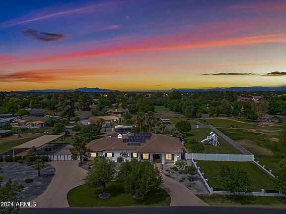 NEW POOL WITH DIVING PLATFORM COMPLETED IN 2025! Situated in a highly coveted neighborhood, this beautiful residence offers the perfect fusion of contemporary luxury interior and tranquil country environment. Just a half mile from a major commercial intersection (Warner and Val Vista) in Gilbert and 10 minutes from the San Tan mall area with sprawling options for shopping and restaurants, this 1.3 acre property is nestled with other 1+ acre properties to create serene and green surroundings.