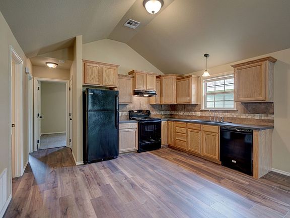 Beautiful treed neighborhood in Claremore, welcoming front porch, spacious bathroom with double vanity, garage with remote opener, vaulted ceilings, central heat and air, ONG gas furnace and water heater, Cox cable and AT&T available, large utility room with washer and dryer hook-ups, Luxury vinyl floors throughout, ceiling fans throughout, fridge, range and dishwasher included, very energy efficient design. $1150 /mo with one year lease $1000 deposit No Smoking, limited pet possibilities Duplex Available December 1st