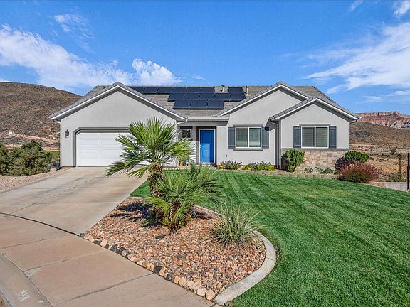 Well maintained home featuring 6 bedrooms and 3 baths. Set on a spacious .43 acre lot with stunning views. The open living room and kitchen create a welcoming space for gathering and everyday living with a deck off the living room that showcases the unobstructed views. The fully finished basement includes 3 bedrooms, bath, family room and kitchen making it ideal for multi generational living or possible rental income. Enjoy the privacy of having no neighbors behind. Additional features include solar panels, reverse osmosis, LVP flooring, stainless appliances and a fully fenced backyard perfect for outdoor enjoyment. Only 20 minutes to world famous Zion Nation al Park, Sand Hollow Reservoir, Sand Dunes and Quail Creek.