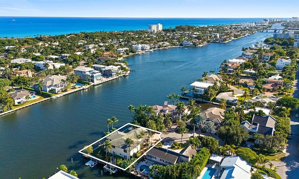 A rare intracoastal opportunity of this scale and privacy is almost never available in East Delray - Villa Pizzo stands in a class of its own. Positioned on a near 10k square foot point lot with an exceptional 210' ft of water frontage, this refined 4 bd + office/4.5 bth residence captures the essence of elevated waterfront living. Upon entry, you are welcomed with wide-water views, high ceilings & bright flowing interiors that transition effortlessly to expansive outdoor terraces. Thoughtfully arranged living spaces emphasize natural light and serene vistas, creating an atmosphere perfect for both elegant entertaining and relaxed coastal living. Perfectly situated a golf cart ride away from Atlantic Ave, embrace Delray's world-class dining and shopping, and world-renowned beaches.
